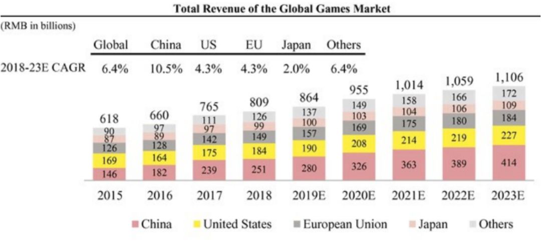 招股说明书分析,中国是世界上最大的游戏市场,无论是在收入和玩家的总数而言,并有望继续推动增长。全球游戏市场。据艾瑞咨询的数据,中国的游戏市场是在收入方面的全球游戏市场的31.0%,在2018年至2023年,预计将以10.5%的复合年增长率增长,超过任何其他主要游戏市场之一。