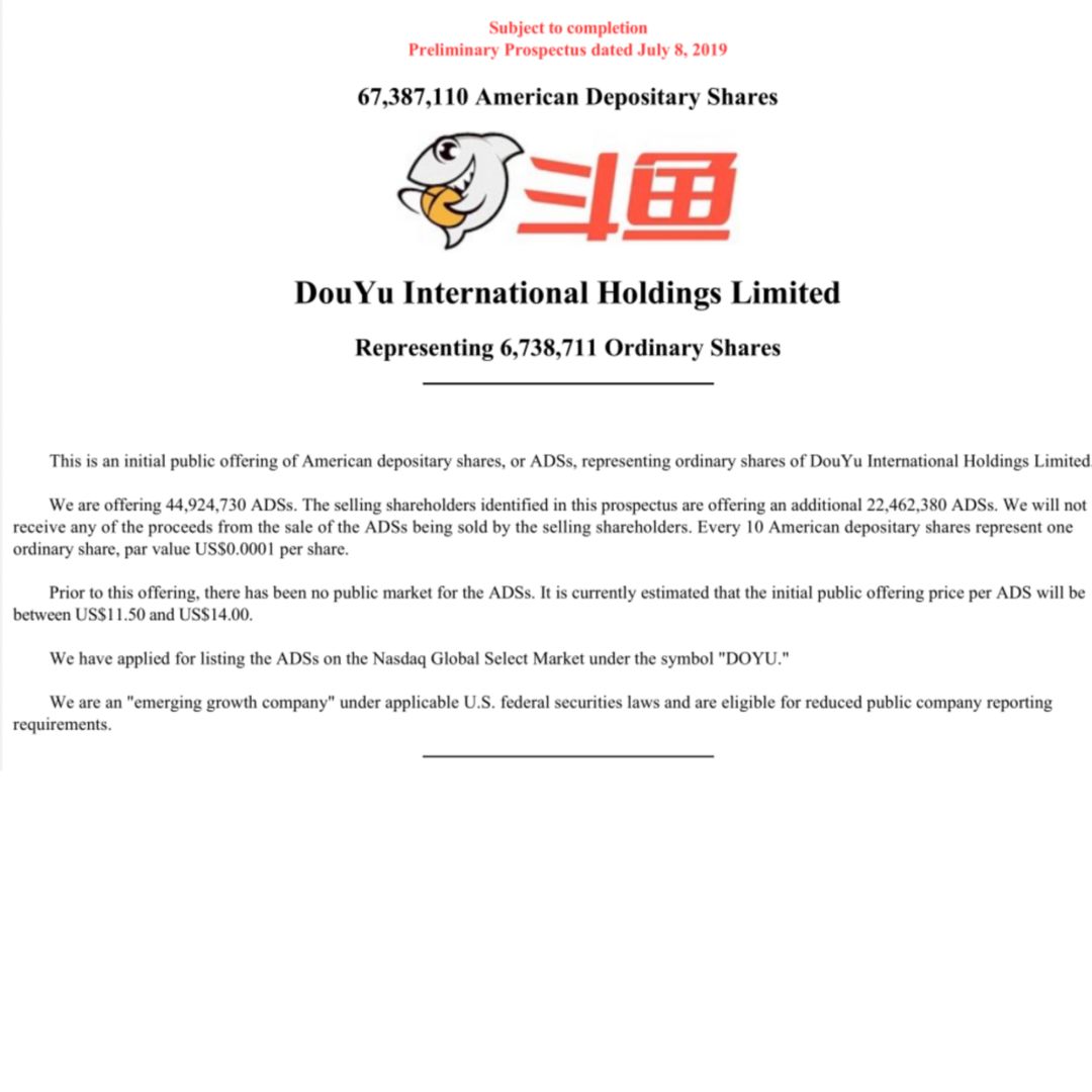 根据招股说明书,斗鱼是中国最大的游戏直播平台,并且是电子竞技直播平台的领先者。