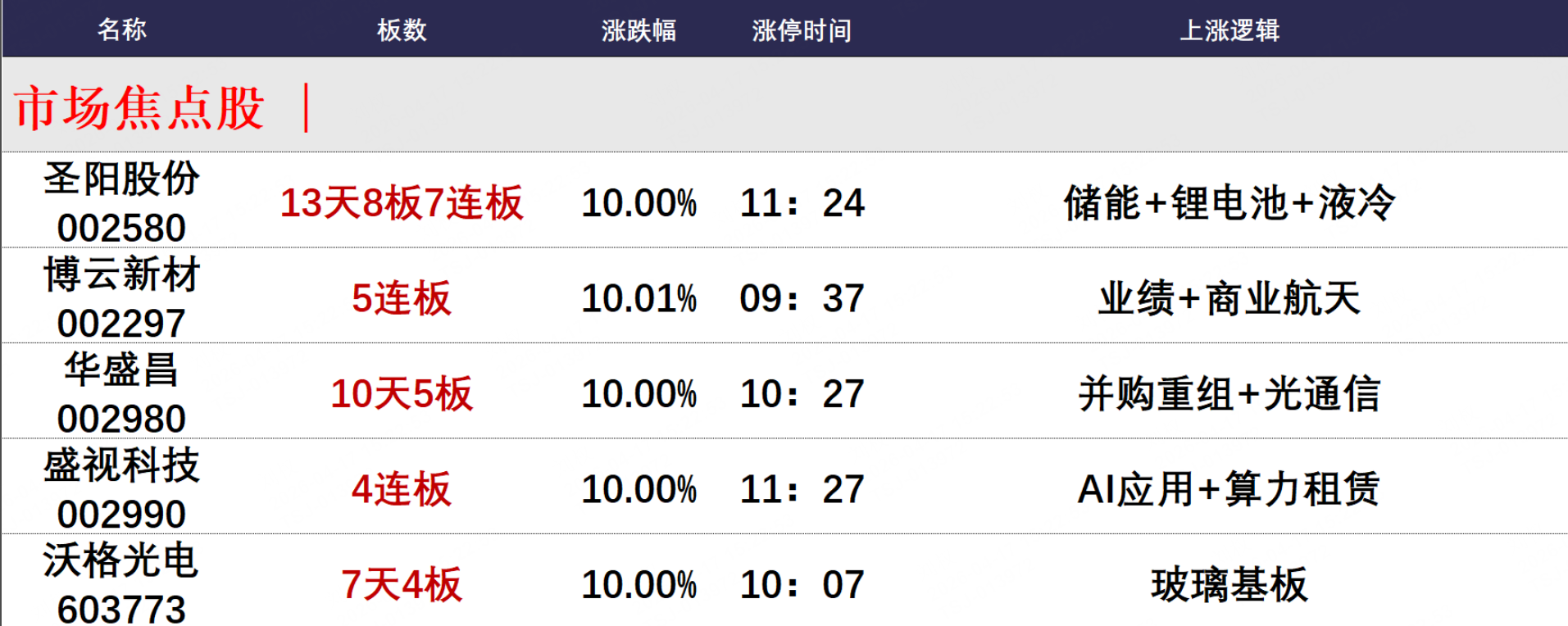 个股方面,大小盘股跷跷板行情明显,全市场近3000只个股下跌,但大盘成长股涨势如虹,中际旭创涨超5%、新易盛涨超9%均创历史新高,胜宏科技、东山精密涨超7%,天孚通信涨超6%。午后北交所迎来一轮快速拉升,创达新材、凯华材料30CM涨停,北证50指数一度涨近6%。连板股多数给出正反馈,圣阳股份晋级7连板继续向上拓展连板空间,博云新材5连板, 盛视科技4连板。此外,人气股沃格光电反包涨停走出7天4板,利通电子无惧昨日尾盘炸板录得8天4板。