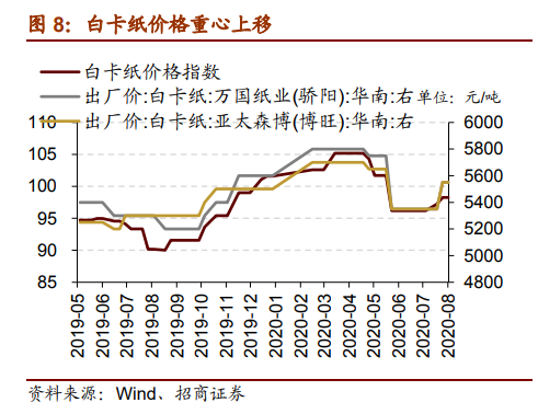 在开学季和双节(国庆与中秋)临近的背景下,多家纸企陆续发布提价函,同时供给端的相对刚性对价格上行创造了有利条件,目前行业集中度提升更加有利于价格中枢上移。今年下半年以及明年将会是党政类书籍出版印刷的集中时期,文化用纸需求将会得到较强的支撑。