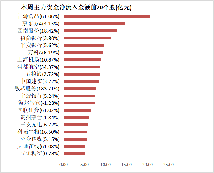 (注:此表为主力资金净流入统计,与上一表格及下一表格中统计口径均不同)