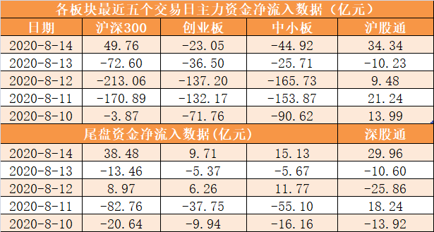 本周两市主力资金累计净流出1886.42亿元。其中周五(8月14日)主力资金开盘净流出120.31亿元,尾盘净流入71.96亿元,全天净流出132.72亿元。