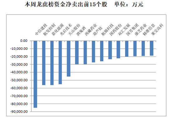 个股龙虎榜净卖出金额居前的15只个股分别为: