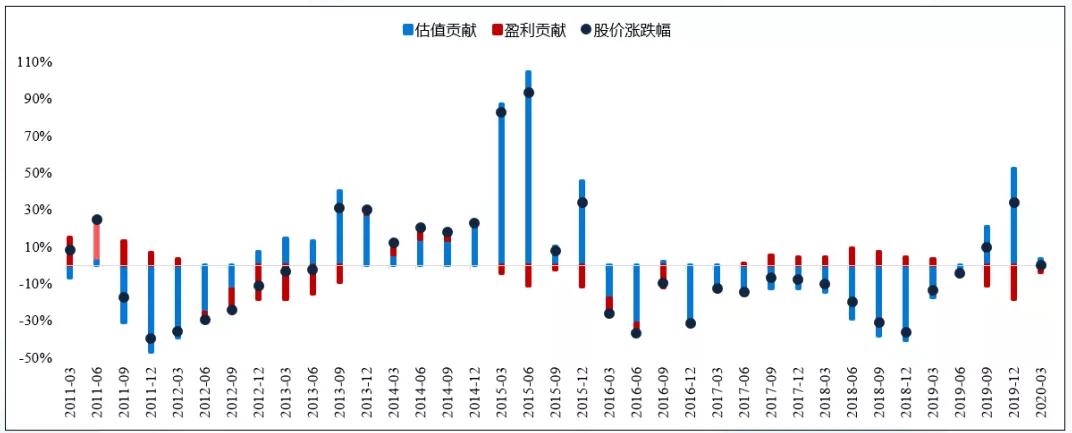 从这个图上来看,其实盈利的上行对整个收益的贡献来看,远远小于估值。