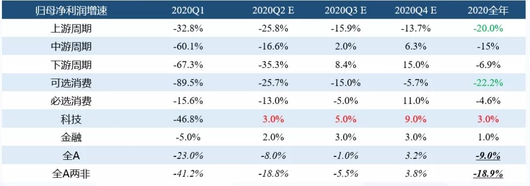 站在当下这个时间点来看,一季度实际上是砸了一个坑。基于我们的CORE模型测算,全年A股市场非金融非能源的归母净利润增速为-18.9%。