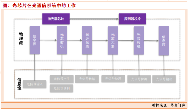 光芯片是光电子器件的核心组成部分,归属于半导体领域。光芯片是现代通信网络的核心之一,是实现光电信号转换的基础元件,其性能决定了光通信系统传输效率。光芯片可以进一步加工组成光电子器件,再集成到光通信设备的收发模块实现广泛应用。光芯片在光通信系统工作中实现光电转换的作用。