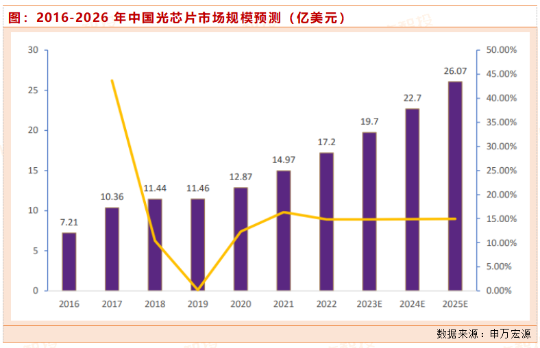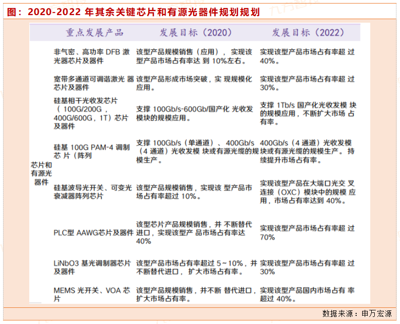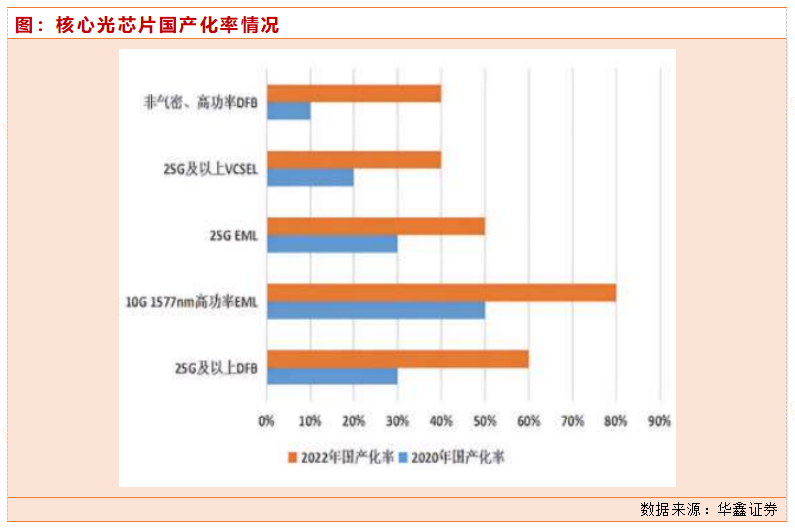 而光探测芯片和25Gbps以上高速率激光芯片仍然处于进口替代的早期阶段,未来国产化的提升潜力广阔。
