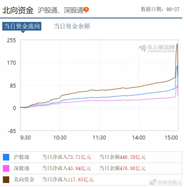 果然,今早开盘北向资金便强势流入。东方财富网显示,截至上午收盘,北向资金净流入71.56亿元。下午北向资金继续强势流入。到了尾盘时间,果然再度上演大戏。