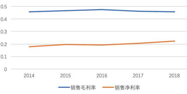 公司的毛利一直比较稳定,维持在45%左右,净利逐年上升,2018年达到22.11%,真是优秀,说明公司投入带来的收获效益比是很高的。
