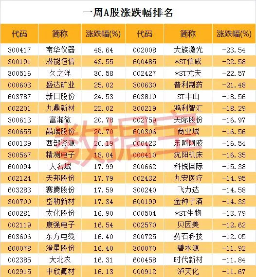 科创板来临前的一周,A股市场个股表现如何?数据宝统计显示,剔除近一个月上市的次新股,本周共9股累计涨幅在20%以上。