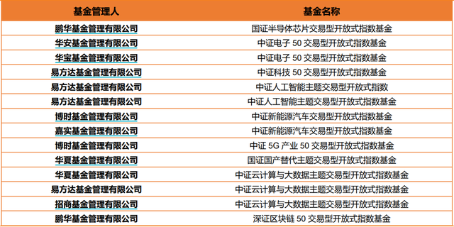 (图为最近三个月待审批或审批待发行的科技类ETF)