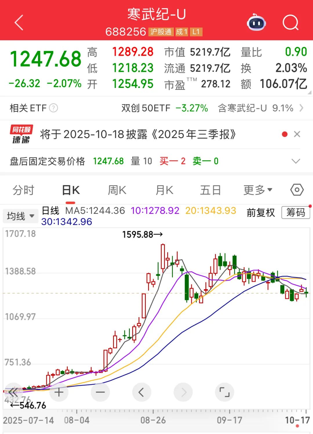 今年8月底,寒武纪-U股价一度上涨至最高价1595.88元/股,超越贵州茅台,成为A股股价最高的个股。
