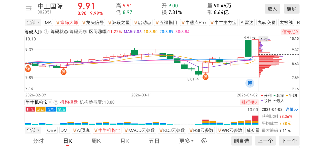3)20260402-中工国际-002051-【筹码大师】和【牛牛机构宝】-近期出现弹信号且底部量柱由绿转红