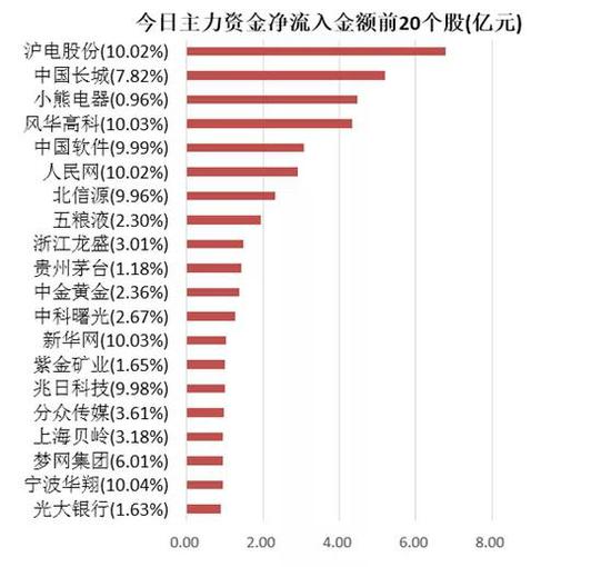 沪深300今日主力资金净流出75.66亿元,创业板净流出25.44亿元,中小板净流出41.58亿元。沪股通净流入5.67亿元,深股通净流入2亿元(本文中沪股通、深股通净流入额以当日已用额度来计,与成交净买入额略有差异,但表示的意义大体一致)。