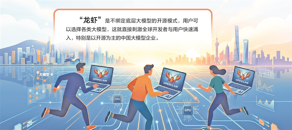“以‘龙虾’为代表的AI智能体属于应用的一种。其低门槛部署、开源开放的特性,打破了AI产业各环节的发展壁垒,带动人工智能上中下游全产业链实现全方位激活。”周琪说。