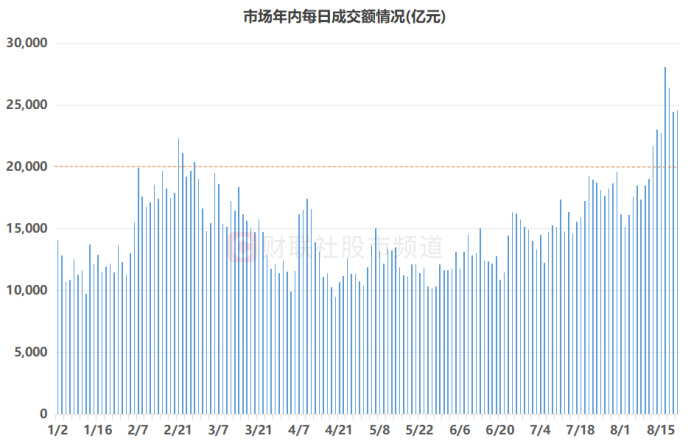 注:市场年内每日成交额情况(截至8月21日收盘)