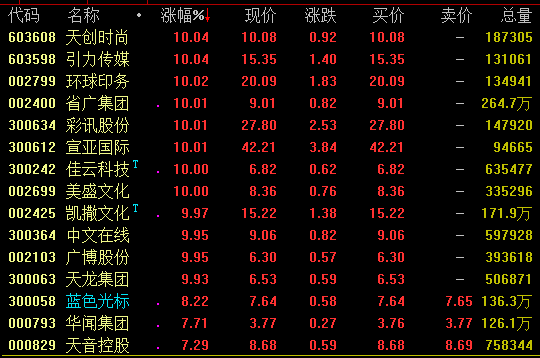 字节跳动概念今日午后爆发,截至收盘,天创时尚、引力传媒、环球印务、省广集团、彩讯股份、宣亚国际、佳云科技、美盛文化、凯撒文化等涨停。