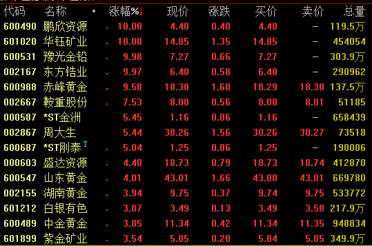 黄金概念今日午后发力走高,截至发稿,鹏欣资源、华钰矿业、豫光金铅、东方锆业等涨停,赤峰黄金逼近涨停,鞍重股份涨逾7%,山东黄金、湖南黄金涨约4%。