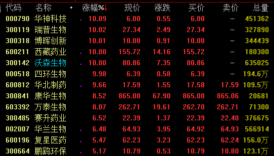 生物疫苗概念今日盘中再度活跃,截至收盘,华神科技、普瑞生物、博创创新、西藏药业、沃森生物、四环生物等涨停,华北制药逼近涨停。值得注意的是,西藏药业、沃森生物再创新高。
