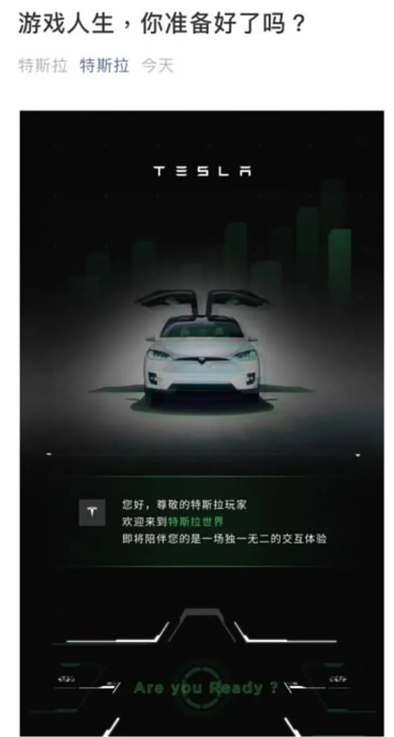 你准备好了吗?这是今天特斯拉微信公众号文章的标题。