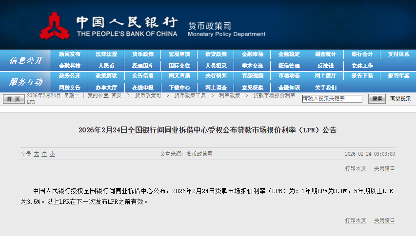 2月贷款市场报价利率(LPR)报价出炉:5年期以上LPR为3.5%,上月为3.5%。1年期LPR为3%,上月为3%。
