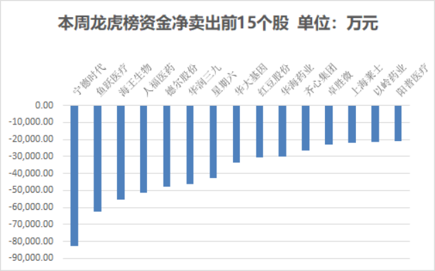 个股龙虎榜净卖出金额居前的15只个股分别为: