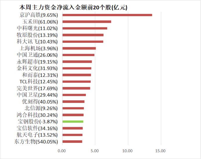 (注:此表为主力资金净流入统计,与上一表格及下一表格中统计口径均不同)