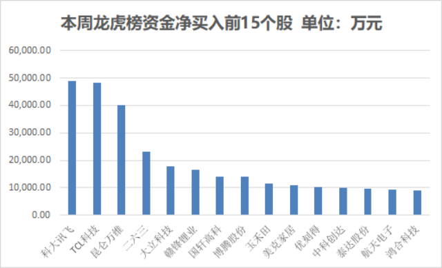 个股龙虎榜净买入金额居前的15只个股分别为: