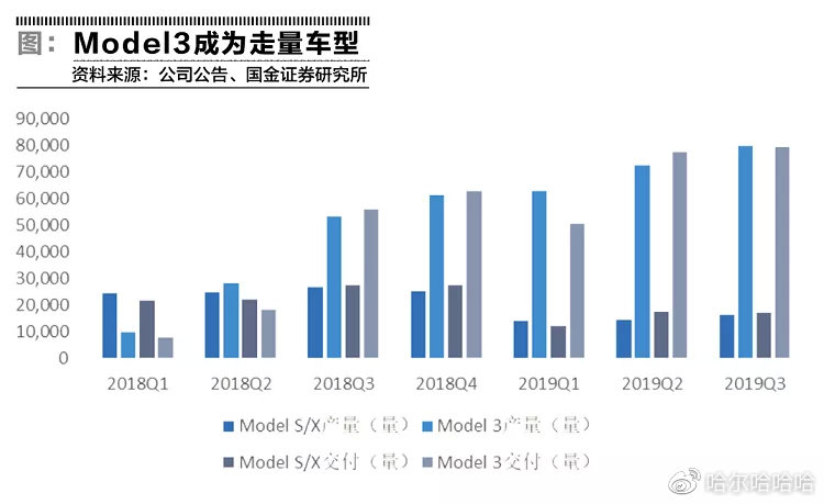 原因三:国产版Model 3是特斯拉由生存过渡到盈利的重要助手。2018年,特斯拉公司在Model 3产能爬坡中实现季度性的盈利,营收同比大幅增长82%,24.5万辆的交付量超越公司成立以来销量的总和。根据销量快报,公司2019年三季度Model 3的产/销量为79837辆/79600辆,Model3和Model S/X的产量比大致在5:1,销量比约4:1,而国产版Model 3定位走量,将是公司未来业绩增厚的主要来源。