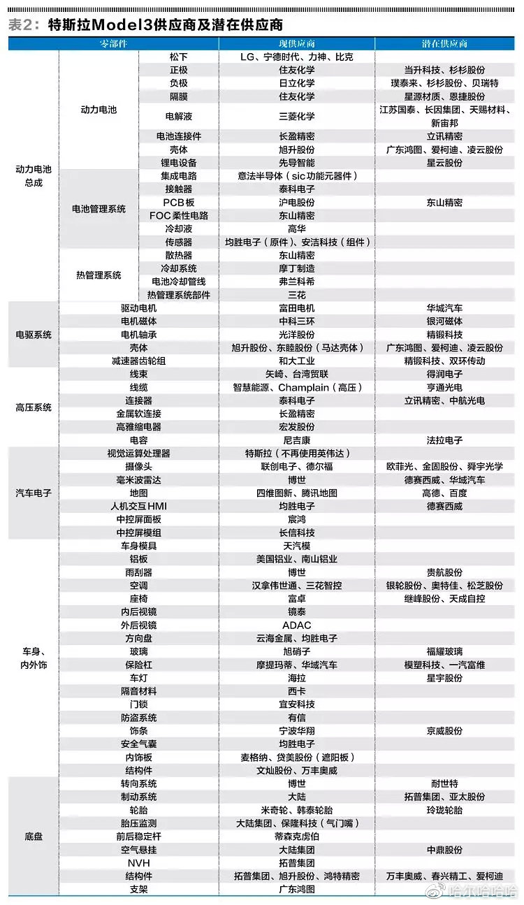 未来两年,特斯拉现有供应商直接受益于Model3上量,潜在供应商有望获订单;而LG化学有望打入电池供应体系,其子供应链获纯增量业绩。