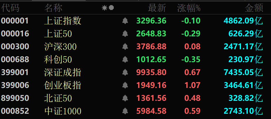 上证指数3300点得而复失,上证50、科创50均微幅飘绿,深证成指、北证50则微幅飘红。上涨个股多于下跌个股,市场成交温和放大至1.26万亿元。