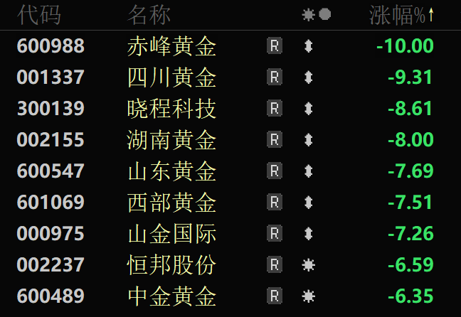 港股黄金股也大跌,赤峰黄金盘中最多跌超18%,龙资源、潼关黄金、山东黄金等也跌逾10%。
