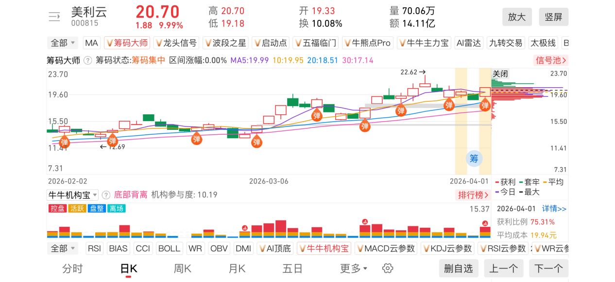 1)20260401-美利云-000815-【筹码大师】和【牛牛机构宝】-近期出现弹信号且底部量柱由绿转红