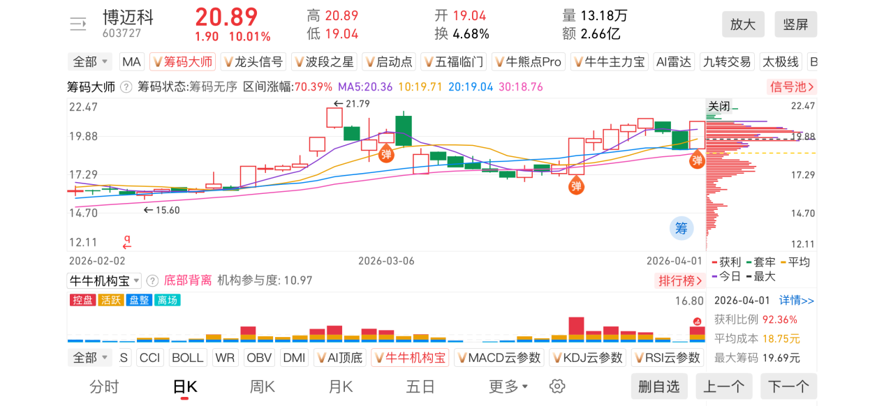 2)20260401-博迈科-603727-【筹码大师】和【牛牛机构宝】-近期出现弹信号且底部量柱由绿转红