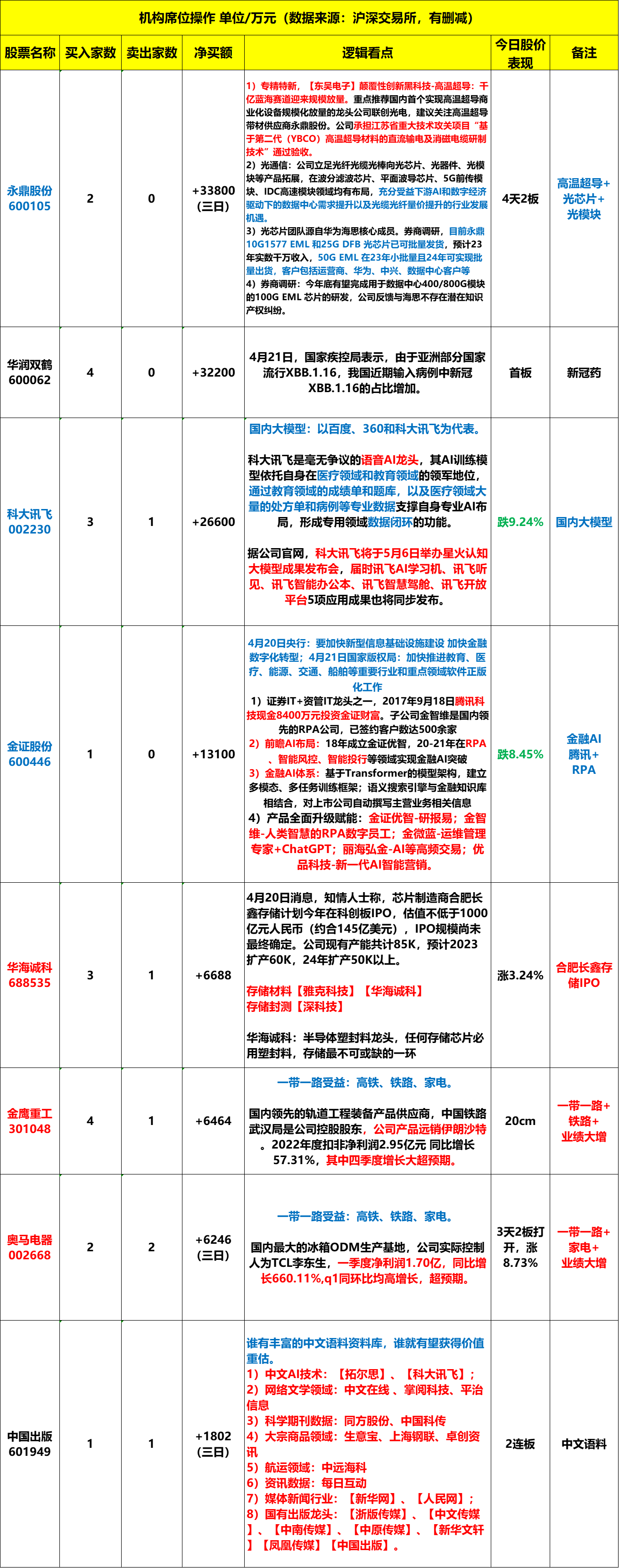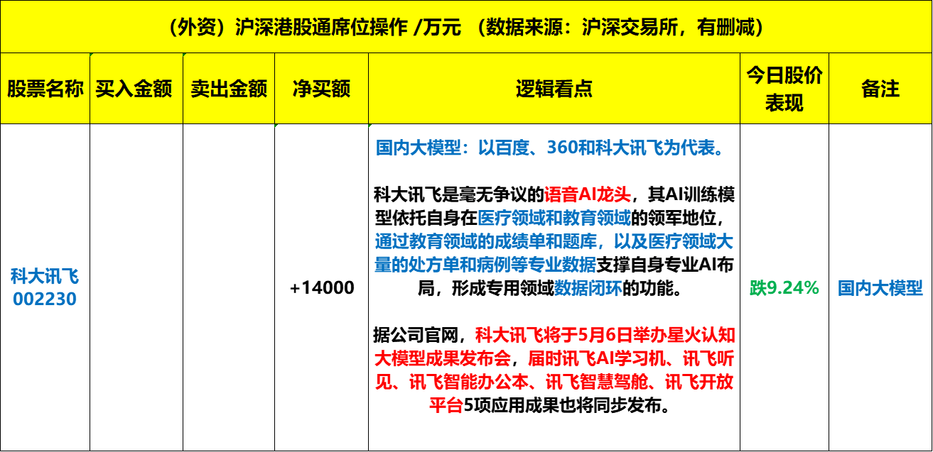 04.21龙虎榜:机构、外资抄底科大讯飞等AI产业模型