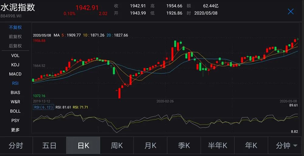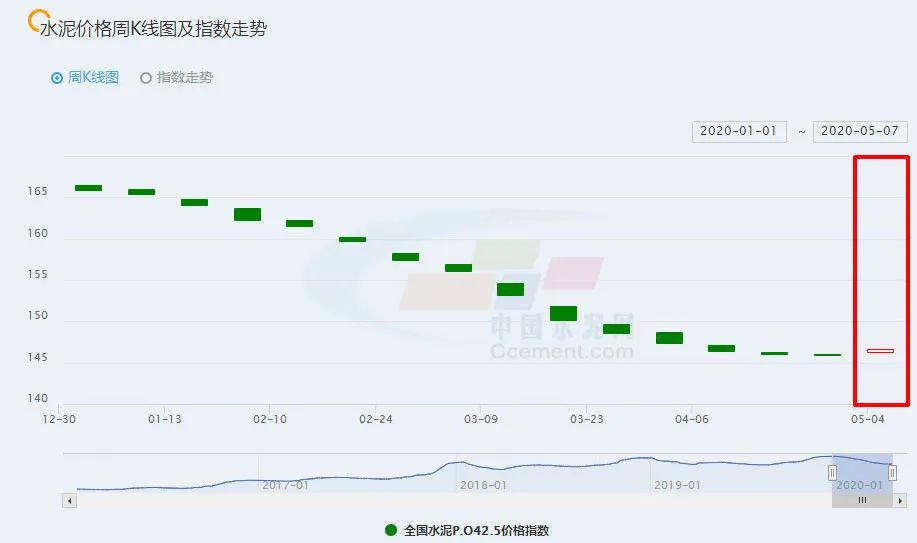 2020年1月以来全国水泥价格周K线图 图片来源:中国水泥网