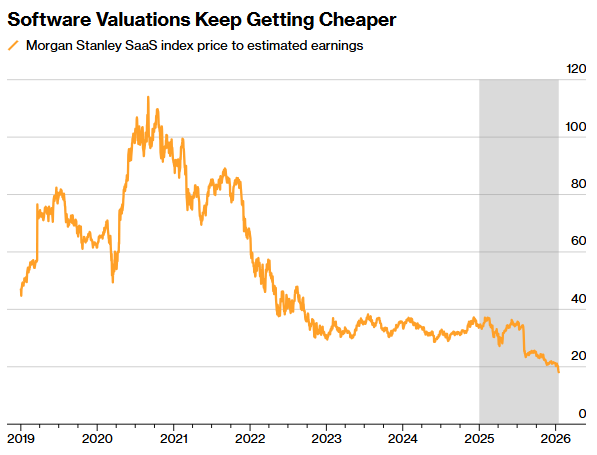 机构称“没有理由持有”!美股软件股陷入“AI焦虑” 板块估值跌至多年低位