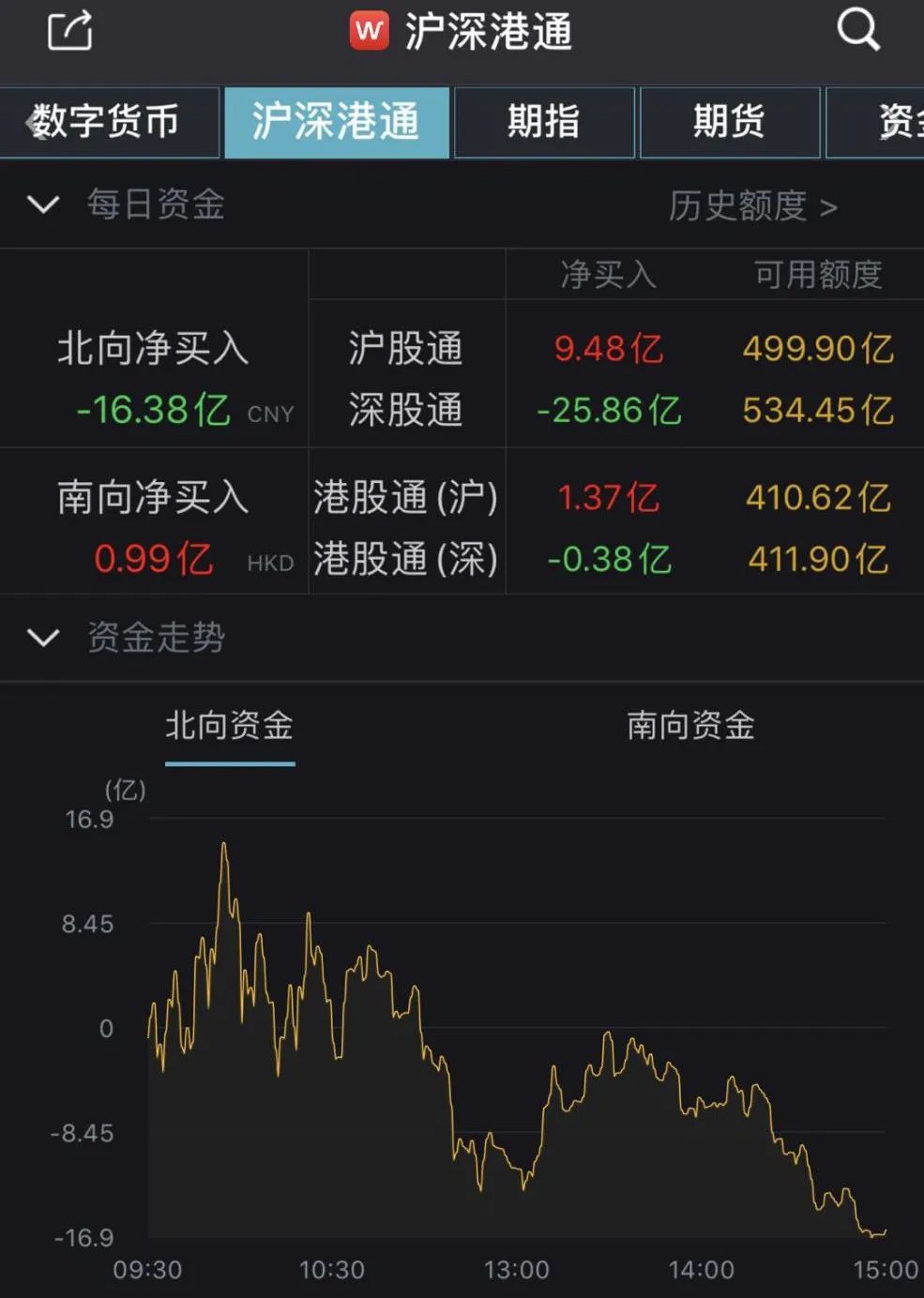 Wind数据显示,今日北向资金净流出16.38亿元,其中沪股通资金净流入9.48亿元、深股通资金净流出25.86亿元,并未出现明显的资金出逃迹象。