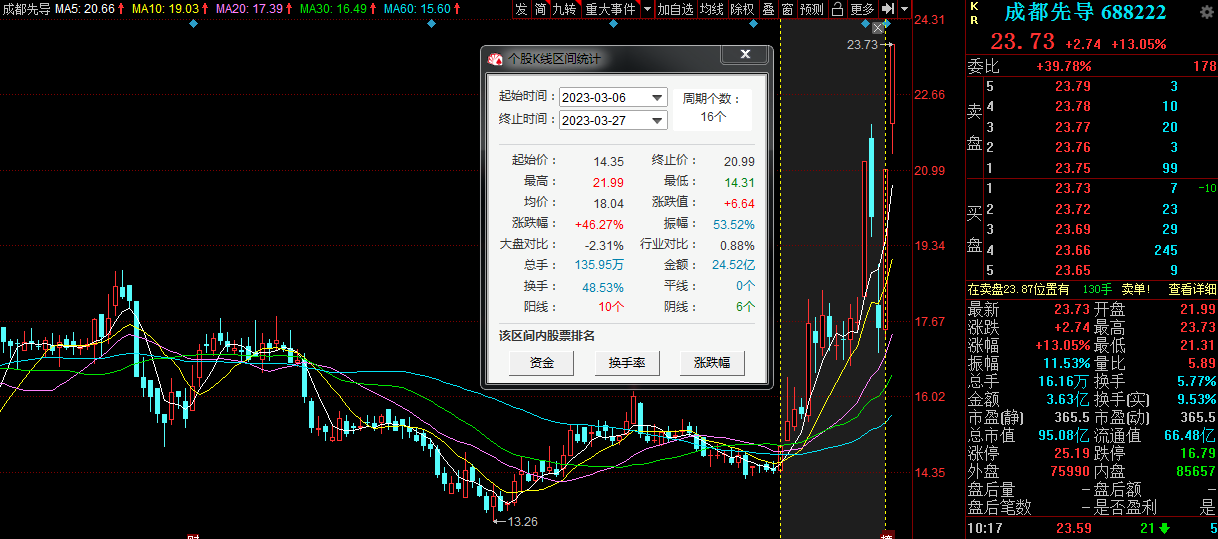 3月28日,成都先导高开高走,截至发稿,报23.73元,涨13.05%。