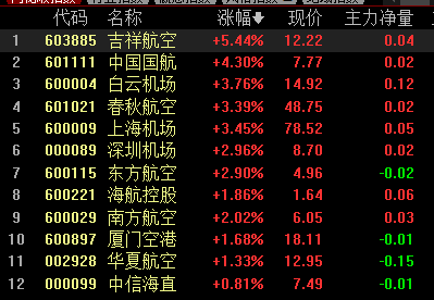 政策持续支持,疫情恢复加快,叠加需求预期升温,航运板块基本面复苏有望加速。机场航运板块直线拉升,吉祥航空领涨,中国国航、春秋航空跟涨。