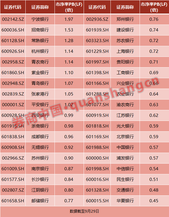 三是估值,目前有很多银行股的市净率来到了0.5-0.7倍左右的水平,但招行还有1.5倍左右,平安银行仍有1.02倍左右。