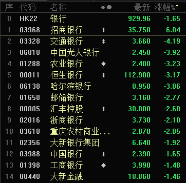可能也是因为这个原因,今天港股中资银行股出现了集体杀跌的情况。除招行外,交通银行、光大银行、农业银行、哈尔滨银行盘中跌幅都超过了3%。