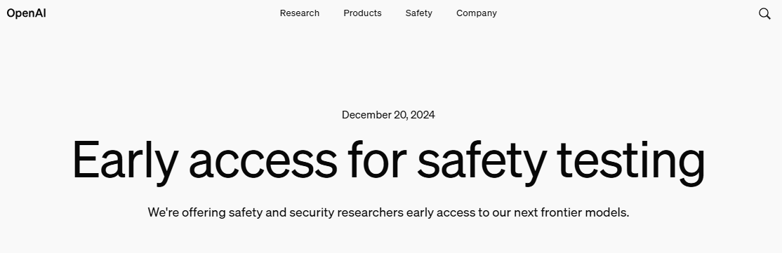 在公开发布o3模型之前,OpenAI也将开放外部研究人员测试o3模型的申请流程,申请将于1月10日截止。