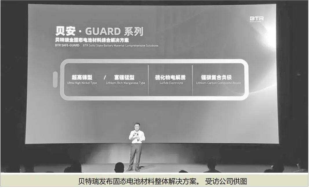 今年5月,电池负极材料龙头贝特瑞发布了固态电池材料整体解决方案,涵盖贝安FLEX半固态及GUARD全固态系列产品。针对人形机器人对电池体积和重量的严格要求,贝特瑞通过材料创新、结构优化两大策略,实现了高性能与轻量化、小型化的平衡。