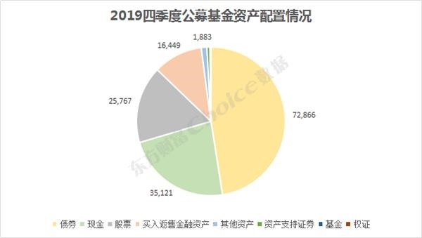 2019年公募基金四季报已全部披露完毕。东方财富Choice数据显示,公募基金资产配置方面,股票投资总市值与股票投资占比均上升,四季度持股总市值25766.80亿元,较三季度持股市值增加3556亿,环比增加16%,同期上证指数上涨2.46%。
