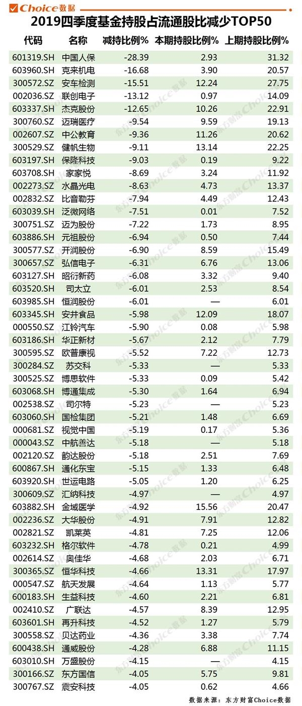 基金持股占流通股比减少TOP50中,6只股票四季度遭公募基金清仓,它们分别是恒润股份、苏交科、司尔特、中航善达、汇纳科技和万盛股份。