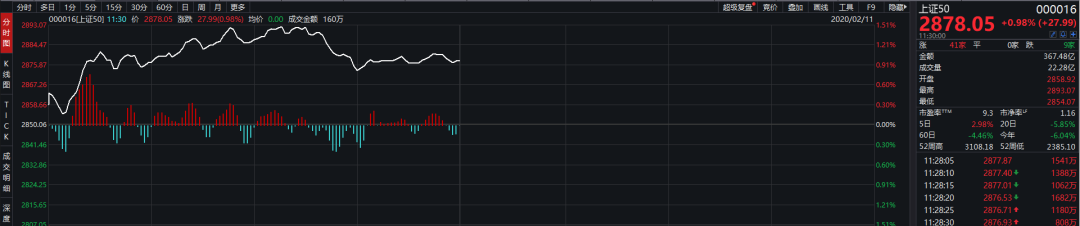 今日早盘上证50 指数走势图