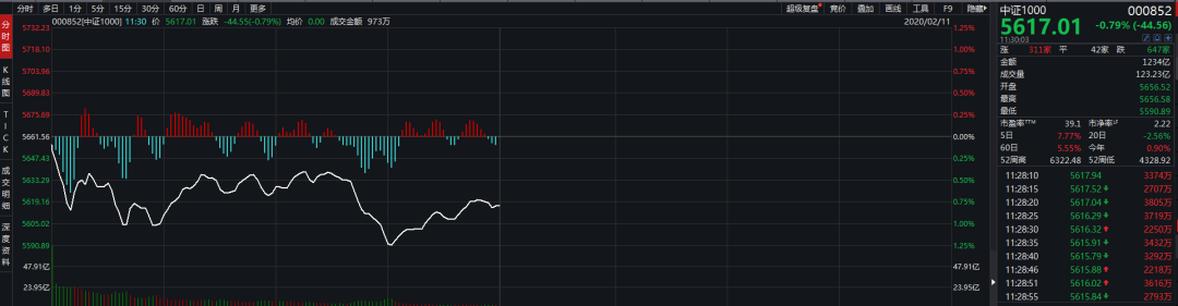 今日早盘中证1000指数走势图