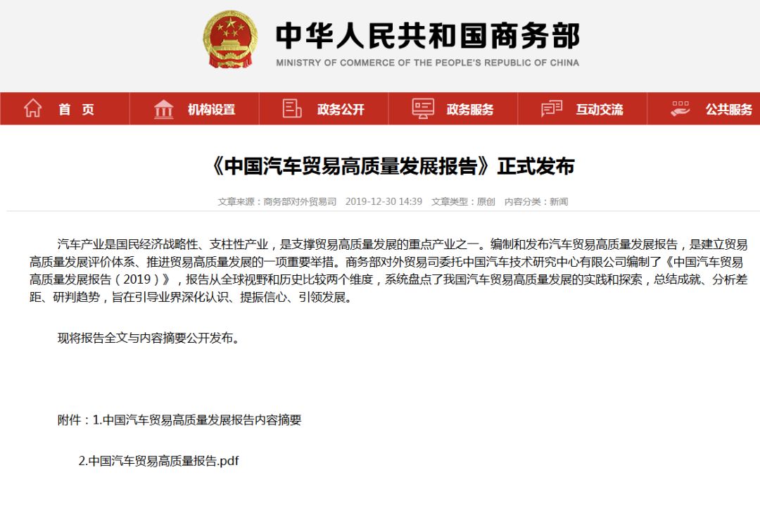 商务部对外贸易司和中国汽车技术研究中心近日联合发布了《中国汽车贸易高质量发展报告(2019年版)》。报告详细阐述了我国汽车贸易高质量发展的内涵和方向,分析了当前形势,归纳了现状和成绩,开展了行业国际竞争力分析,并提出了汽车贸易高质量发展趋势的五大展望。