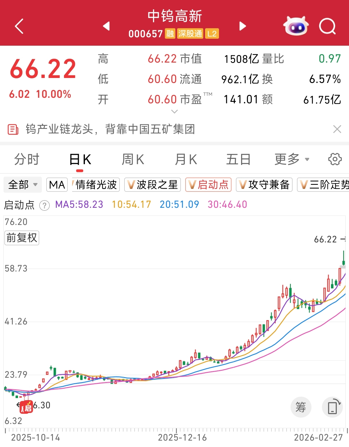 根据“启动点”监控,近日上涨的中钨高新,在10月22日的时候出现了“启动点”信号,随后开启了主升浪。